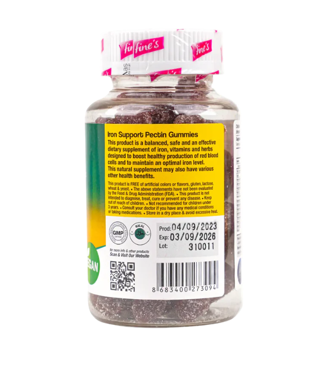 ادعم نمو طفلك، طاقته، وصحته العامة مع علكات فاينز آيرون سبورت + Fe للأطفال. هذا المكمل الغذائي اللذيذ والقابل للمضغ يساعد على الحفاظ على مستويات الحديد الصحية، دعم إنتاج كريات الدم الحمراء، وتقليل التعب الناتج عن نقص الحديد.