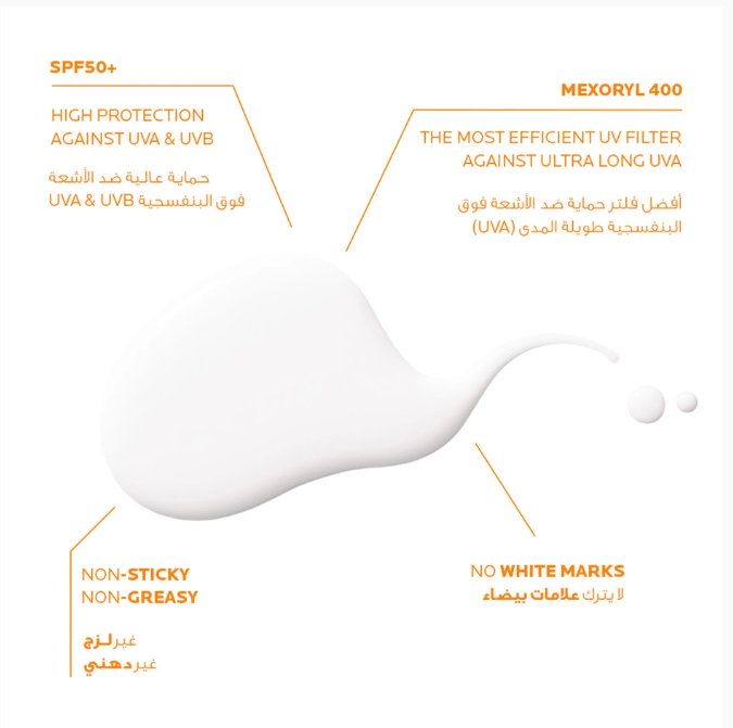 حماية واسعة النطاق +SPF50 ضد أشعة UVA/UVB