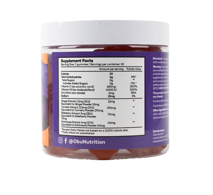 صُممت علكات أوبو لدعم المناعة لتوفير دعم يومي لجهاز مناعي قوي وصحي. تحتوي هذه العلكات اللذيذة بنكهة الليمون على فيتامين C والزنك والبيلسان والإشيناسيا، مما يجعلها وسيلة فعالة وشهية لمساعدة الجسم في مقاومة الأمراض الموسمية والحفاظ على النشاط. مصنوعة من مكونات طبيعية وغير معدلة وراثيًا وخالية من الغلوتين والإضافات الصناعية، وتُعد خيارًا مثاليًا للبالغين الذين يبحثون عن دعم مناعي بدون الحاجة لتناول الحبوب.