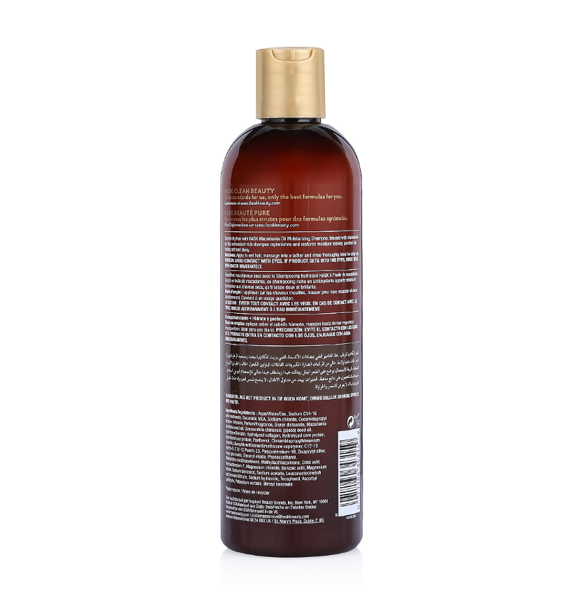 استعيدي حيوية شعرك الجاف والمتقصف مع شامبو هاسك بزيت المكاديميا، بتركيبة مغذية تنظف الشعر بلطف مع ترطيبه وتقويته من الجذور حتى الأطراف. غني بزيت المكاديميا الذي يخترق ألياف الشعر ليعوض الرطوبة المفقودة، يصلح التلف ويعزز اللمعان الطبيعي دون أن يجرد الشعر من زيوته الطبيعية.