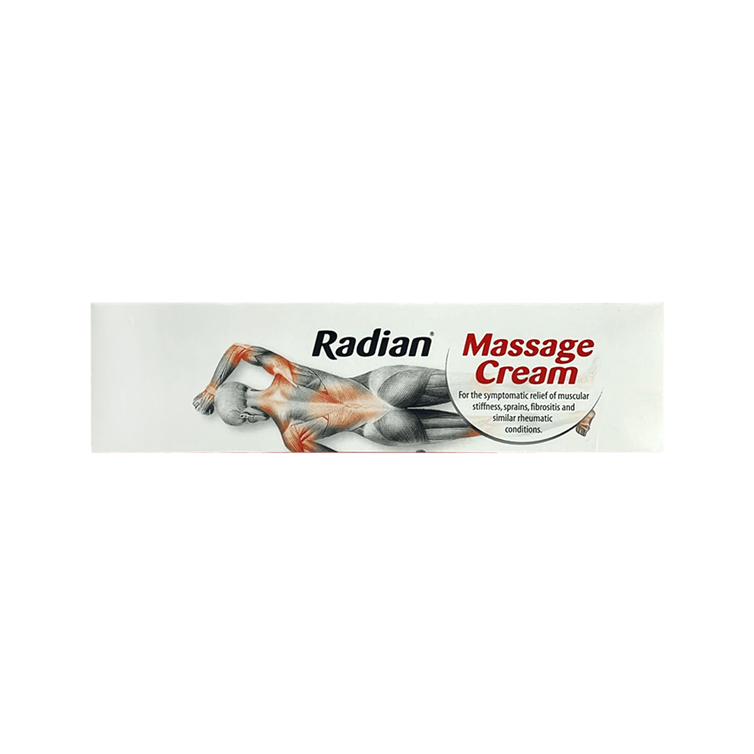 Radian massage cream provides symptomatic relief from aches and pains including muscular stiffness, bruising, sprains and fibrositis. It is ideal for treatments for the body in order to provide relaxation.