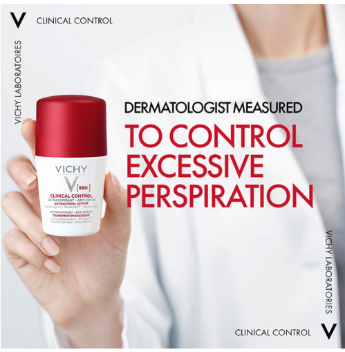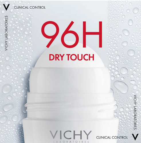 Discover long-lasting freshness with Vichy Clinical Control 96H Roll-On—a powerful antiperspirant and deodorant clinically proven to provide up to 96 hours of dry, odor-free underarms. Featuring a highly effective blend of aluminum chlorohydrate, antibacterial zinc PCA, absorbent perlite, and soothing dimethicone, this alcohol-free formula neutralizes sweat and odor while maintaining skin comfort. Dermatologist-tested and hypoallergenic, it’s your go-to solution for excessive sweating—even in stressful conditions. Made in France with Vichy volcanic water. Up to 96 h dry touch & sweat control