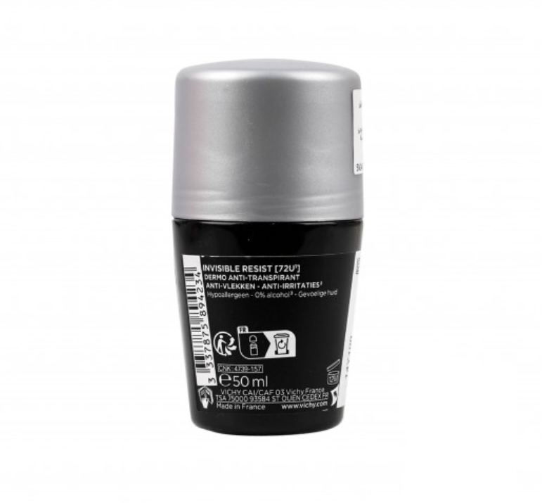 Vichy Deo Roll Invisible Resist 72h Antiperspirant Roll On, Black Formula 50 Ml