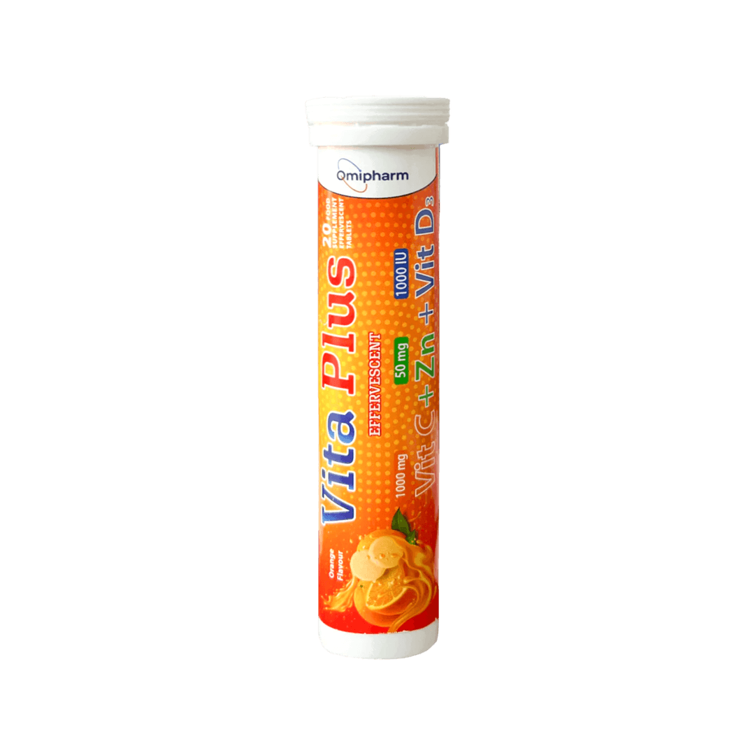 Omipharm- Vita Plus Vitamin C 1000mg + Zinc 50mg + Vitamin D3 1000IU 20 Effervescent Tablets