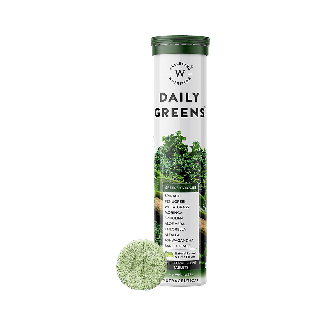 Wellbeing Nutrition Daily Greens Effervescent Tablets, Natural Lemon & Lime Flavor, 15 Tablets